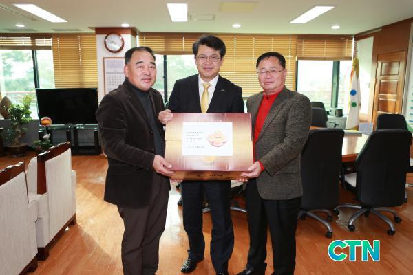 [¾Æ»ê/ctn]¾Æ»ê½Ã µÐÆ÷³óÇù°ú¼ö¿¬ÇÕȸ(ȸÀå ÀÌÁøÈÖ, Ãѹ« Á¤¼øÁ¤)´Â 20ÀÏ º¹±â¿Õ ½ÃÀå¿¡°Ô ¾Æ»ê½Ãû Á÷¿øµé¿¡ °í¸¶¿î Ç¥ÇöÀ¸·Î ¹è 55¹Ú½º¸¦ Àü´ÞÇß´Ù.