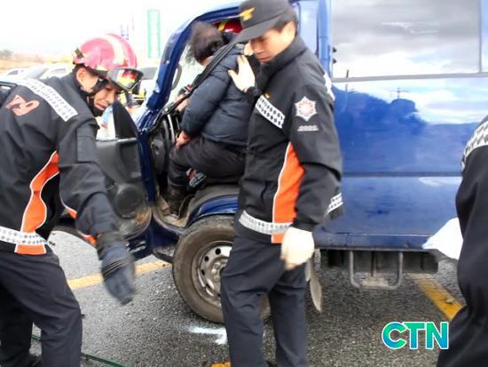ÇöÀåÃ⵿ ±¸Á¶´ë¿øÀº ¿ä±¸Á¶ÀÚ »óÅÂÈ®ÀÎ ÈÄ ±¸Á¶°øÀÛÂ÷·®¿¡¼ À¯¾ÐÀü°³±â¸¦ Àü°³ÇÏ¿© Æ®·° Â÷·® ¹® °³¹æ ¹× ±¸Á¶ °ø°£ È®º¸ ÈÄ ¿ä±¸Á¶ÀÚ¸¦ Â÷·® ¹ÛÀ¸·Î ¾ÈÀüÇÏ°Ô ±¸Á¶ÇÑ ÈÄ Ä§ÂøÇÏ°Ô ºÎ»óÁ¤µµ¸¦ È®ÀÎÇß´Ù.