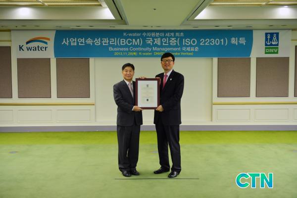 [°æÁ¦/ctn] K-water(»çÀå ÃÖ°è¿î)´Â ¼¼°è ÃÖÃÊ·Î ¼öÀÚ¿øºÐ¾ß »ç¾÷¿¬¼Ó¼º°ü¸®(ÀÌÇÏ BCM, Business Continuity Management) ±¹Á¦ÀÎÁõ(ISO22301)À» ȹµæÇϰí, 28ÀÏ ³ë¸£¿þÀÌ DNVÀÎÁõ¿øÀ¸·ÎºÎÅÍ ÀÎÁõ¼¸¦ ¹Þ¾Ò´Ù.