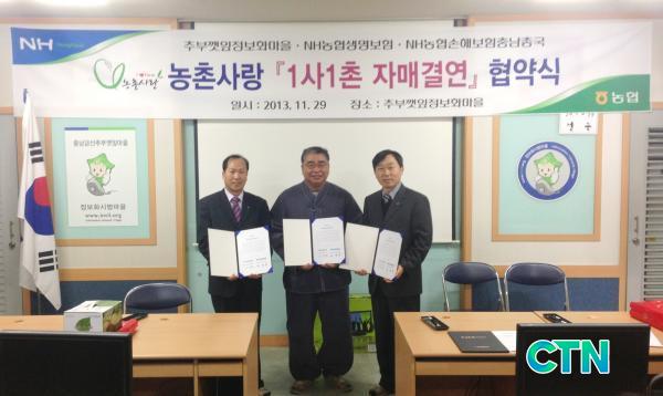 [°æÁ¦/ctn]³óÇùÁß¾Óȸ Ãæ³²Áö¿ªº»ºÎ(º»ºÎÀå ±èº´¹®)Àº NH³óÇù»ý¸íº¸Çè Ãæ³²Ãѱ¹(Ãѱ¹Àå ¿ì¼ºÃ¶), NH³óÇù¼ÕÇØº¸Çè Ãæ³²Ãѱ¹ (Ãѱ¹Àå °¸íȯ)°ú ÇÔ²² 29ÀÏ ±Ý»êÃߺβ¢ÀÙÁ¤º¸È ¸¶À»(À§¿øÀå Á¤È¿µ¿) üÇè°ü¿¡¼ 1»ç1ÃÌ ÀڸŰῬ Çù¾à½ÄÀ» ¸Î°í ³óÃÌ»ç¶û¿îµ¿ ½ÇõÀ» ´ÙÁüÇß´Ù.