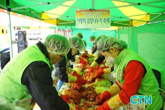 À̳¯ Çà»ç¿¡ Âü¿©ÇÑ ºÀ»çÀÚµéÀÌ ¸¸µç ±èÄ¡´Â ÃÑ 6,000kg ºÐ·®À¸·Î 10kg½Ä Æ÷ÀåÇÏ¿© Ȧ·Î°è½Å ¾î¸£½Å, Àå¾ÖÀÎ, ¼Ò³â¼Ò³à°¡Àå, Àú¼Òµæ°¡Á¤, »õÅ͹Πµî ¾î·Á¿î ÀÌ¿ô¿¡°Ô Àü´Þ µÆ´Ù.