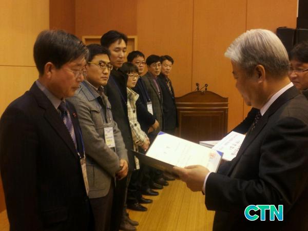 <³óÃÌÁøÈïû¿¡¼ ¿¸° °¼Ò³ó¡¤°æ¿µÁö¿ø Á¾ÇÕÆò°¡È¸¿¡¼ À̽ÂÁÖ ³ó¾÷±â¼ú¼¾ÅÍ ¼ÒÀå(¿ÞÂÊ Ã¹ ¹øÂ°)ÀÌ ¿ì¼ö ±â°ü»óÀ» ¼ö»óÇϰí ÀÖ´Ù.>
