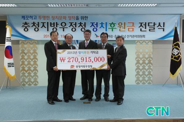[°æÁ¦/ctn]ÃæÃ»Áö¹æ¿ìÁ¤Ã»Àº 19ÀÏ ´ëÀü±¤¿ª½Ã¼±°Å°ü¸®À§¿øÈ¸¿¡¼ ÃæÃ»Áö¹æ¿ìÁ¤Ã» Á÷¿ø 2,941¸íÀÌ ¸ðÀº Á¤Ä¡ÈÄ¿ø±Ý ÃÑ2¾ï7õ91¸¸5õ¿øÀ» ¼±°Å°ü¸®À§¿øÈ¸¿¡ Àü´ÞÇß´Ù.