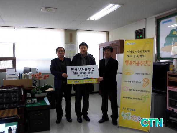 [¾Æ»ê/ctn]Çѱ¹OA¼Ö·ç¼Ç(´ëÇ¥ ÀåÁø¿µ, ¿ëȵ¿ ¼ÒÀç)Àº Áö³ 27ÀÏ ¿Â¾ç6µ¿»ç¹«¼Ò¸¦ ¹æ¹®ÇØ °¡Á¤ÇüÆíÀÌ ¾î·Á¿î ÀÌ¿ôµé¿¡°Ô Áö¿øÇØ´Þ¶ó¸ç ÈÄ¿ø±Ý 100¸¸¿øÀ» ¿Â¾ç6µ¿ÇູŰ¿òÃßÁø´Ü(´ÜÀå ÀÌÁ¾¼ö)¿¡ Àü´ÞÇß´Ù.