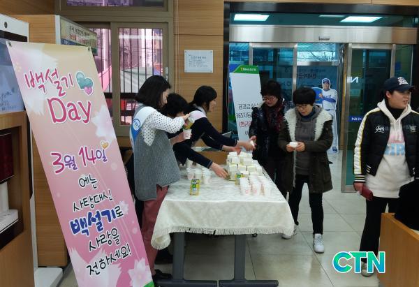 [°æÁ¦/ctn]³óÇùÁß¾Óȸ Ãæ³²Áö¿ªº»ºÎ(º»ºÎÀå ±èº´¹®¡¤ÀÌÇÏ Ãæ³²³óÇù)´Â Áö³ 14ÀÏ ¿ì¸® °íÀ¯ À½½ÄÀÎ'¹é¼³±â ¶±'À» ¿ì¸®½Ò·Î ºú¾î NH³óÇùÀºÇà Ãæ³²¿µ¾÷ºÎ¿¡¼ ÀºÇàÁ¡Æ÷¸¦ ãÀº °í°´µé¿¡°Ô ³ª´²ÁÖ¸ç Á¤À» ³ª´©´Â '¹é¼³±â µ¥ÀÌ'Çà»ç¸¦ °¡Á³´Ù.
