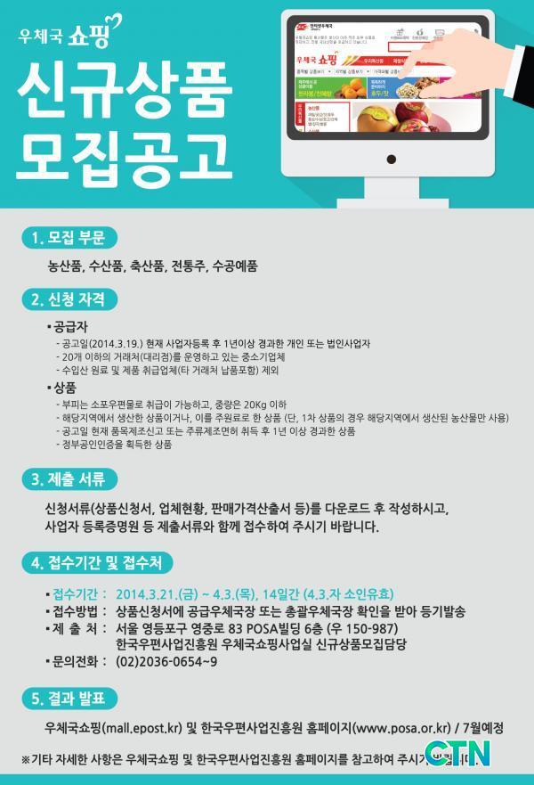 [°æÁ¦/ctn]ÃæÃ»Áö¹æ¿ìÁ¤Ã»(ûÀå ±è¿µ¼ö)Àº 2015³â ¿ìü±¹¼îÇο¡¼ ÆÇ¸ÅµÉ ½Å±Ô»óǰÀ» ´ÙÀ½´Þ 3ÀϱîÁö ¸ðÁýÇÑ´Ù°í 24ÀÏ ¹àÇû´Ù.