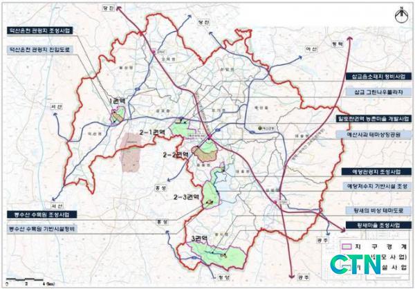 °³¹ß°èȹ¿¡ µû¸£¸é ¿¹»ê±ºÀÇ ¿ª»ç, ¹®È, »ýÅÂÀÚ¿øÀ» À¯±âÀûÀ¸·Î ¿¬°áÇÏ´Â °³¹ß Àü·«À¸·Î ´ö»ê¿Âõ, ¿¹´ç°ü±¤Áö, Ȳ»õ °ø¿øÁ¶¼º µî ÀÚ¿¬È¯°æÀ» ÀÌ¿ëÇÑ °ü±¤ÈÞ¾ç»ç¾÷°ú ÀåÇ×¼± ÆóöµµºÎÁö¸¦ Ȱ¿ëÇÑ »ýȰȯ°æ°³¼±»ç¾÷ÀÌ ÁøÇàµÇ¸ç ´ö»ê°ü±¤Áö ÁøÀÔµµ·Î Á¶¼º µî Áö¿ª³» ÆÄ±ÞÈ¿°ú°¡ Å« ±â¹Ý½Ã¼³ÀÌ ±¸ÃàµÈ´Ù.