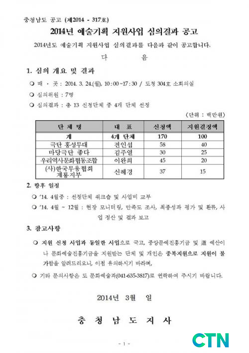 [Ãæ³²/ctn]Áö³ 3¿ù26ÀÏ ÃæÃ»³²µµ ȨÆäÀÌÁö¸¦ ÅëÇØ¼ 'ÃæÃ»³²µµ¸¦ ´ëÇ¥ÇÒ ¸¸ÇÑ ¿ì¼ö¹®È ÇÁ·ÎÁ§Æ®¸¦ ¼±Á¤ÇÏ´Â' 2014³â Ãæ³²µµ ¿¹¼ú±âȹ»ç¾÷ ½ÉÀǰá°ú¸¦ °ø°³ µÆ´Ù.