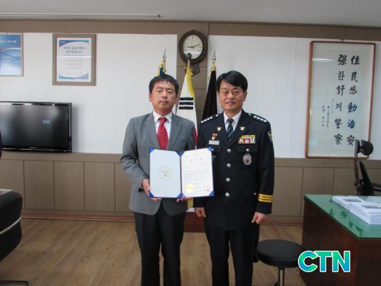 [¼Ãµ/ctn]Ãæ³² ¼Ãµ°æÂû¼(¼Àå ÇÑ´Þ¿ì)´Â 23ÀÏ ÀÚ»ìÀǽÉÀÚ Á¶±â ¹ß°ß¿¡ µµ¿òÀ» ÁØ ¹®Ä¡¿µ(³², 49¼¼) ºñÀÎÀÚÀ²¹æ¹ü´ëÀå¿¡°Ô °æÂû¼Àå °¨»çÀåÀ» ¼ö¿©Çß´Ù.