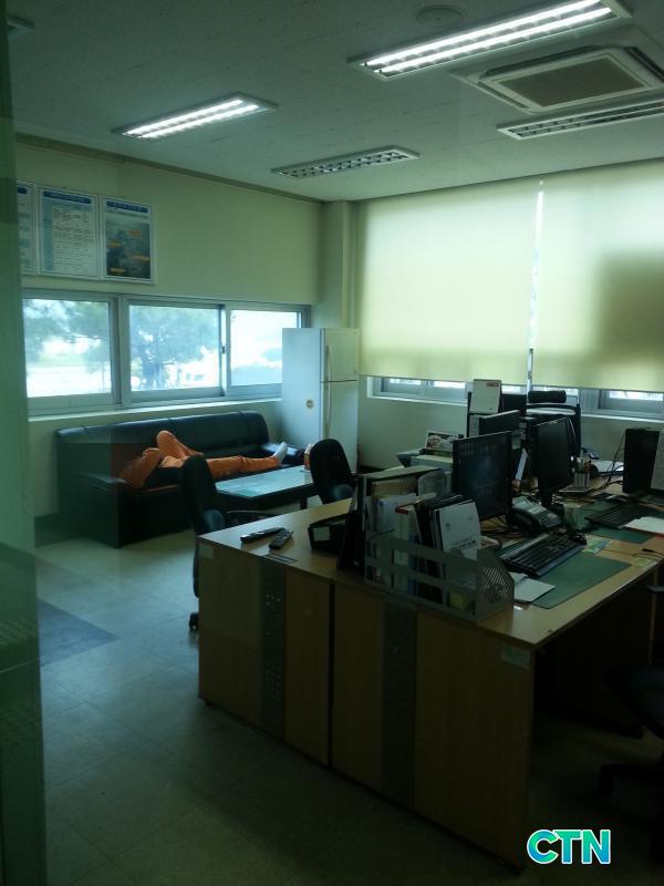 À̳¯ 119ÈÇб¸Á¶´ë¿¡ ±Ù¹«ÀÚ´Â 1Ãþ »ç¹«½Ç ¼îÆÄ¿¡ ´©¿ö ³·ÀáÀ» ÀÚ°í ÀÖ¾úÀ¸¸ç, 2Ãþ ´ë±â½Ç¿¡¼´Â 3¸íÀÇ ±Ù¹« ´ë±âÀÚµéÀÌ ³·ÀáÀ» ÀÚ°í ÀÖ¾î ±¸Á¶´ë¿¡´Â ±Ù¹«ÀÚ°¡ ¾ø¾ú´ø °ÍÀ¸·Î ¹àÇôÁ³´Ù.