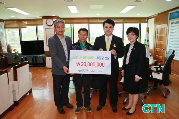 [¾Æ»ê/ctn]ÃÊ·Ï¿ì»ê ¾î¸°ÀÌÀç´Ü Ãæ³²Áö¿ªº»ºÎ(º»ºÎÀå ±è¼±±Í)°¡ Áö³´Þ 30ÀÏ ¾Æ»ê½Ã¸¦ ¹æ¹®ÇØ °ü³»ÀÇ ¾î·Á¿î ÀÌ¿ô¿¡°Ô ½á´Þ¶ó¸ç ÈÄ¿ø±ÝÀ» Àü´ÞÇß´Ù.