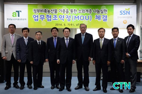 [°æÁ¦/ctn]Çѱ¹³ó¼ö»ê½ÄǰÀ¯Åë°ø»ç(aT, »çÀå ±èÀç¼ö)´Â Á¤ºÎºñÃà³ó»ê¹°ÀÇ ±âÁõÀ» ÅëÇÑ ³ó»ê¹° ¼ö±Þ¾ÈÁ¤°ú ¼Ò¿Ü°èÃþ ³ª´® ½ÇÇöÀ» À§ÇØ Áö³ 7ÀÏ aT¼¾ÅÍ ¼ö±ÞÁ¾ÇÕ»óȲ½Ç¿¡¼ Çѱ¹»çȸº¹ÁöÇùÀÇȸ(ÀÌÇÏ »çȸº¹ÁöÇùÀÇȸ, ȸÀå Â÷ÈïºÀ)¿Í ¾÷¹«ÇùÁ¶¾àÁ¤(MOU)¸¦ ü°áÇß´Ù.