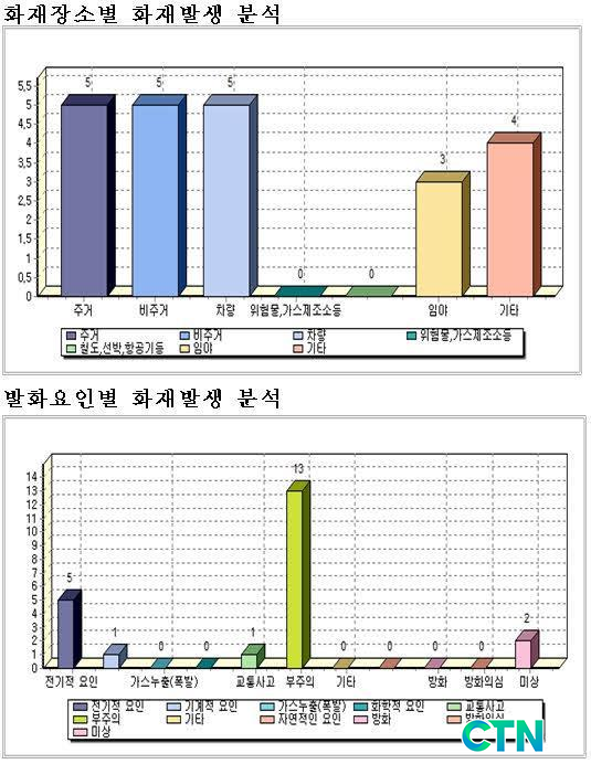 ÈÀç¹ß»ý Àå¼Òº°·Î´Â ÁÖ°Å 5°Ç¡¤ºñÁְŽü³ 5°Ç¡¤Â÷·® 5°Ç¡¤±âŸ 4°Ç¡¤ÀÓ¾ß 3°Ç¼øÀ¸·Î ¹ß»ýÇßÀ¸¸ç, ±âŸ 3°ÇÀº ÄÁÅ×À̳ʡ¤Áß°íÆÇ³Ú¡¤¿¡¾îÄÁ ½Ç¿Ü±â¡¤Æ¢±èÀ¯ µî¿¡¼ ¹ß»ýÇß´Ù.