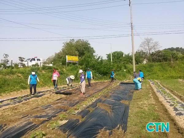 [¾Æ»ê/ctn]¾Æ»ê½Ã ¿Â¾ç5µ¿ ÁÖ¹ÎÀÚÄ¡À§¿øÈ¸(À§¿øÀå ÀÓ½ÂÀÎ) À§¿øµéÀÌ Áö³ 16ÀÏ º¹Áö»ç¾÷ Àç¿ø ¸¶·ÃÀ» À§ÇØ ½ÉÀº ´ÜÈ£¹Ú¹ç¿¡¼ ³óÀÛ¹°À» °¡²Ù¸ç ±¸½½¶¡À» Èê·È´Ù.