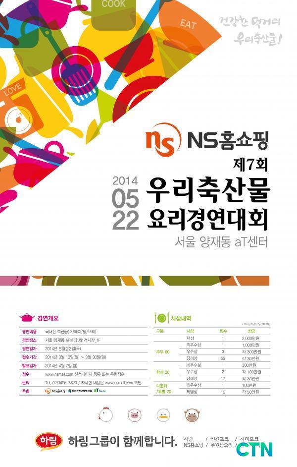 '¿ì¸®Ãà»ê¹° ¿ä¸®°æ¿¬´ëȸ'´Â NSȨ¼îÇÎÀÌ ¼Ò, µÅÁö, ¿À¸®, ´ß 4°¡Áö ±¹³» Ãà»ê¹°ÀÇ ¿ì¼ö¼ºÀ» ¾Ë¸®°í ¼ÒºñÃËÁøÀ» À§ÇØ ¸Å³â ÁøÇàÇÏ´Â ¿ä¸®´ëȸ·Î, ±Ý³â¿¡´Â aT¼¾ÅÍ¿Í °øµ¿À¸·Î ÀÏ¹Ý ½Ã¹Îµéµµ Âü¿©ÇÒ ¼ö ÀÖµµ·Ï ´Ù¾çÇÑ ÇÁ·Î±×·¥À» ÁغñÇß´Ù.