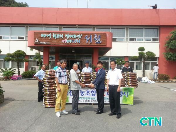 [¼Ãµ/ctn]Ãæ³² ¼Ãµ±º Ⱦç¸é ¿ù»ê¸® ¿µ³óÁ¶ÇÕ¹ýÀÎ(´ëÇ¥ ÇѼ®À²)¿¡¼ 25ÀÏ °ü³» ¼Ò¿Ü°èÃþÀ» À§ÇØ ½Ò 10kg 70Æ÷(200¸¸¿ø »ó´ç)¸¦ Ⱦç»ç¶ûÈÄ¿øÈ¸¿¡ Àü´ÞÇß´Ù.