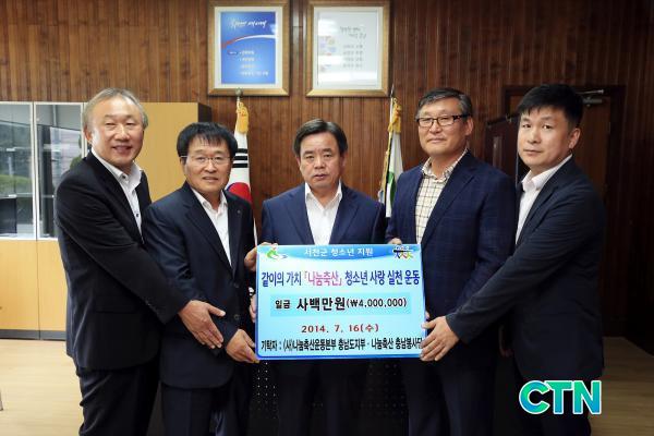 [¼Ãµ/ctn]Ãæ³² ¼Ãµ±º(±º¼ö ³ë¹Ú·¡)Àº 16ÀÏ ¿ÀÀü ±º¼ö½Ç¿¡¼ »ç)³ª´®Ãà»ê¿îµ¿º»ºÎ Ãæ³²µµÁöºÎ(´ëÇ¥ ¸ÍÁØÀç)¿¡¼ ¼Ãµ±º¿¡ û¼Ò³â Áö¿ø»ç¾÷ºñ 400¸¸¿øÀ» Àü´ÞÇß´Ù°í ¹àÇû´Ù.
