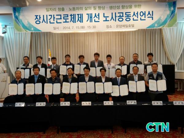 º»°ÝÀûÀΠȸÀÇ¿¡ ¾Õ¼ ÁøÇàµÈ 'Àå±â°£±Ù·Î °³¼± µî ³ë»ç Çù·Â °øµ¿¼±¾ð½Ä'¿¡´Â ¡ãº¹±â¿Õ ¾Æ»ê½ÃÀå ¡ãÀ̺´Àç ´ëÀüÁö¹æ°í¿ë³ëµ¿Ã» õ¾È°í¿ë¼¾ÅÍ ¼ÒÀå ¡ã¿©»óÅ ³ë»ç¹ßÀüÀç´Ü ÁÁÀºÀÏÅÍ ¸¸µé±â º»ºÎÀå ¡ã°ÈïÁø Çѱ¹³ëÃÑ ¾Æ»êÁö¿ªÁöºÎÀÇÀå ¡ãÀÌÈñÆò Ãæ³²ºÏºÎ»ó°øÈ¸ÀǼÒÀå ¡ãÁ¸½¼ÄÜÆ®·ÑÁî ¿ÀÅä¸ðƼºêÄÚ¸®¾Æ ³ë»ç´ëÇ¥ ¡ã¢ßÇö´ã»ê¾÷ ³ë»ç´ëÇ¥ ¡ã¢ßȽÂÀδõ½ºÆ®¸® ³ë»ç´ëÇ¥ ¡ãÇϳª¸¶ÀÌÅ©·Ð(ÁÖ) ³ë»ç´ëÇ¥ ¡ãYMC(ÁÖ) ³ë»ç´ëÇ¥ ¡ã¢ß½Å¿ø ³ë»ç´ëÇ¥ ¡ã¢ßKMP »ç¿ëÀÚ´ëÇ¥ ¡ãKB¿ÀÅä½Ã½º(ÁÖ) »ç¿ëÀÚ´ëÇ¥ µî 12°³ ±â°ü ±â¾÷ü 19¸íÀÌ Âü¿©ÇØ È±â¾Ö¾ÖÇÑ ºÐÀ§±â ¼Ó¿¡¼ ÁøÇàµÆ´Ù.