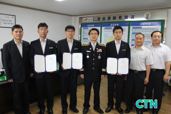 [¾Æ»ê/ctn]¾Æ»ê¼Ò¹æ¼(¼Àå ÀÌÁ¾ÇÏ)´Â Áö³ 30ÀÏ 119±¸Á¶±¸±Þ¼¾ÅÍ¿¡ ±Ù¹«ÇÏ´Â À̽ÂÁÖ ¼Ò¹æÀå(42¼¼)¡¤À±Ã¶Èñ ¼Ò¹æ»ç(34¼¼)¡¤¸ðÁ¾119¾ÈÀü¼¾ÅÍ¿¡ ±Ù¹«ÇÏ´Â ÀÌ¿µÇö ¼Ò¹æÀå(42¼¼)¡¤¹è¹æÀ¾ °ø¼ö¸® ¼ÒÀç ½£¼Óµ¿¹°º´¿ø Çã»ó¸í ¿øÀå(37¼¼)¿¡°Ô 'ÇÏÆ®¼¼À̹ö'(Heart Saver) ÀÎÁõ¼¸¦ ¼ö¿©Çß´Ù.