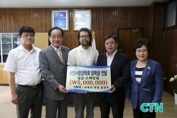 [¼Ãµ/ctn]Çѱ¹ ¼´ÜÀÇ ÁßÁø ¼¿¹°¡ÀÌÀÚ Àü°¢°¡·Î À¯¸íÇÑ ¿ì¸®°íÀå Ãâ½Å ±¹´ç Á¶¼ºÁÖ(63)¾¾°¡ 8ÀÏ ¿ÀÀü ±º¼ö½Ç¿¡¼ ¼Ãµ»ç¶ûÀåÇÐȸ(ÀÌ»çÀå ±èÁß¿ø)¿¡ ÀåÇÐ±Ý 5¹é¸¸¿øÀ» Àü´ÞÇß´Ù.