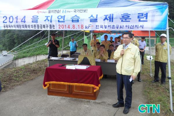 [¾Æ»ê/ctn]ÇѼºÁø ±âÀÚ = Çѱ¹³ó¾îÃ̰ø»ç(»çÀå ÀÌ»ó¹«)´Â 18ÀÏ ¿ÀÈÄ3½Ã ¾Æ»êÁö»ç(Áö»çÀå À±¼®±Ù)°ü³» ¼Û¾Ç¸é ±ÃÆòÀú¼öÁö¿¡¼'2014 À»Áö¿¬½À ½ÇÁ¦ÈÆ·Ã'À» ³ó¸²¼ö»ê½ÄǰºÎ ÀÌÁØ¿øÂ÷°üº¸¡¤¾Æ»ê½Ã À¯±âÁØ ½ÃÀÇÀ塤¾Æ»ê½Ã °ÀÍÀç ºÎ½ÃÀå¡¤Ãæ³²µµÃ» ±èµ·°ï ³óÁ¤±¹Àå µî À¯°ü±â°ü°ú Áö¿ªÁֹΠ100¿©¸íÀÌ Âü¼®ÇÑ °¡¿îµ¥ Àú¼öÁö ÇÇÆøÀ¸·Î ÀÎÇÑ Àú¼öÁö Á¦¹æ ½½¶óÀ̵ù ºØ±«¸¦ °¡»óÇÑ ÈÆ·ÃÀ» ½Ç½ÃÇß´Ù.