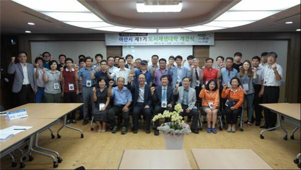[¾Æ»ê/ctn]ÇѼºÁø ±âÀÚ = ¾Æ»ê½Ã°¡ Áö³´Þ 30ÀÏ ½Ãû »óȲ½Ç¿¡¼ µµ½ÃÀç»ý´ëÇÐ ¼ö°»ý µî 50¿© ¸íÀÌ Âü¼®ÇÑ °¡¿îµ¥ ¾Æ»ê½Ã Á¦1±â µµ½ÃÀç»ý´ëÇÐ °³°½Ä ¹× ¿À¸®¿£Å×À̼ÇÀ» °³ÃÖÇß´Ù.