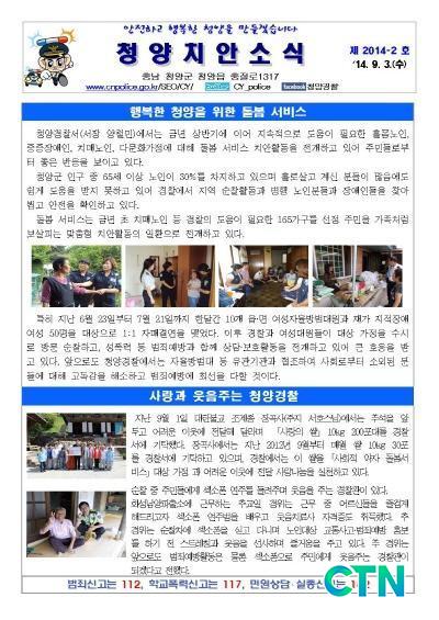 [û¾ç/ctn]ÀüÀÎö ±âÀÚ = û¾ç°æÂû¼(¼Àå ¾çö¹Î)´Â Áֹο¡°Ô ¹üÁË¿¹¹æ Á¤º¸¸¦ Á¦°øÇÏ°í ¾ÈÀüÀ» À§ÇÑ Ã¥ÀÓÀ» ´ÙÇϱâ À§ÇÑ È°µ¿ÀÇ ÀÏȯÀ¸·Î Ä¡¾È¼Ò½ÄÁö¸¦ ¸¸µé¾î ¹èºÎÇϰí ÀÖ¾î È£ÀÀÀ» ¹Þ°í ÀÖ´Ù.
