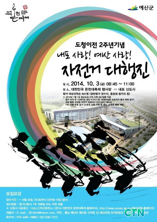 '³»Æ÷»ç¶û! ¿¹»ê»ç¶û! ÀÚÀü°Å´ëÇàÁø'Àº 2014 ´ëÇѹα¹ ¿Âõ´ëÃàÁ¦ÀÇ ¼º°øÀû °³ÃÖ¿Í ³»Æ÷½Åµµ½Ã Ãæ³²µµÃ» ÀÌÀü 2ÁÖ³âÀ» ¸Â¾Æ À̸¦ ±â³äÇϱâ À§ÇØ ¸¶·ÃµÆ´Ù.