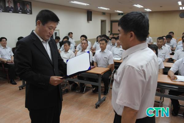 [¿¹»ê/ctn] ¿À¼öȯ ±âÀÚ = ¿¹»ê¼Ò¹æ¼(¼Àå ±è°æÈ£)´Â 23ÀÏ ¿ÀÀü ¼Ò¹æ¼ 3Ãþ ȸÀǽǿ¡¼ ¿¸° Á÷Àå±³À° Áß '8¿ùÀÇ ÇöÀå¾ÈÀü°ü¸® ¿ì¼ö´ë¿ø'À¸·Î ¼±Á¤µÈ ¼Ò¹æÀå À̱¤¿ì¿¡°Ô ǥâÀ» ¼ö¿©Çß´Ù.