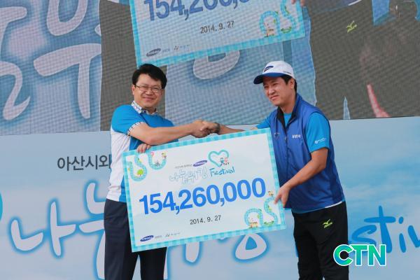 ÇÑÆí À̳¯ Çà»ç¿£ ¸ðµÎ 15,426¸íÀÌ Âü°¡ÇØ ±âºÎ±Ý°ú »ï¼ºÀüÀÚÀÇ ¸ÅĪÆÝµå·Î ¸¶·ÃµÈ ÃÑ 1¾ï 5,426¸¸ ¿ø Àü¾×ÀÌ ¾Æ»ê½ÃÀÇ º¹Áö±â±ÝÀ¸·Î Àü´ÞµÆ´Ù.