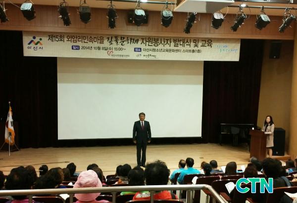 [¾Æ»ê/ctn]ÇѼºÁø ±âÀÚ = ¾Æ»ê½Ã¿Í ¾Æ»ê½ÃÀÚ¿øºÀ»ç¼¾ÅÍ(¼¾ÅÍÀå ±è´ë°æ)°¡ Áö³ 8ÀÏ Ã»¼Ò³â±³À°¹®È¼¾ÅÍ ½º¸¶Æ®È¦¿¡¼ Á¦15ȸ ¿Ü¾Ï¹Î¼Ó¸¶À» ¤Ǯ¹®ÈÁ¦ ÀÚ¿øºÀ»çÀÚ ¹ß´ë½ÄÀ» °³ÃÖÇß´Ù.