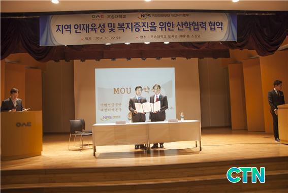 [°æÁ¦/ctn]Á¤¹ÎÁØ ±âÀÚ = ±¹¹Î¿¬±Ý°ø´Ü ´ëÀüÁö¿ªº»ºÎ(º»ºÎÀå ·ù´ö·Ä)´Â 22ÀÏ ¿ì¼Û´ëÇб³ µµ¼°ü ÁöÇÏ 1Ãþ ¼Ò°´ç¿¡¼ Áö¿ªÀÎÀç À°¼º ¹× Áö¿ªÁֹΠº¹ÁöÁõÁø µî »êÇÐ Çù·ÂÀ» °ÈÇϱâ À§ÇØ ¿ì¼Û´ëÇб³¿Í ¾÷¹«Çù¾àÀ» ü°áÇß´Ù°í ¹àÇû´Ù.
