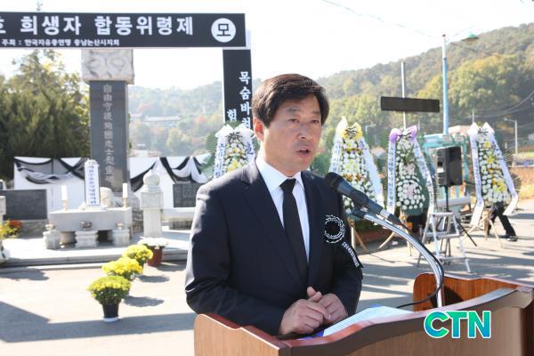[³í»ê/ctn] Á¤Áöö ±âÀÚ = Çѱ¹ÀÚÀ¯ÃÑ¿¬¸Í ³í»ê½ÃÁöȸ(ÁöȸÀå ÃÖº´¿õ)´Â 28ÀÏ °üÃË»ç ÀÔ±¸¿¡ À§Ä¡ÇÑ ÇÕµ¿À§·Éºñ¿¡¼ Á¦34ȸ ÀÚÀ¯¼öÈ£ Èñ»ýÀÚ ÇÕµ¿À§·ÉÁ¦¸¦ °ÅÇàÇß´Ù.