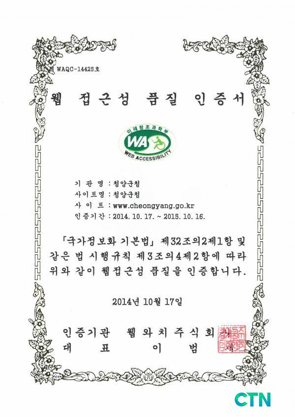 [û¾ç/ctn]ÀüÀÎö ±âÀÚ = û¾ç±º ȨÆäÀÌÁö°¡ WAǰÁúÀÎÁõ¸¶Å©(À¥ Á¢±Ù¼º ǰÁúÀÎÁõ¸¶Å©)¸¦ ȹµæÇÔÀ¸·Î½á ´©±¸³ª ½±°Ô ÀÌ¿ëÇÒ ¼ö ÀÖ´Â Æí¸®ÇÑ Á¢±Ù¼ºÀ» ÀÎÁ¤¹Þ¾Ò´Ù.