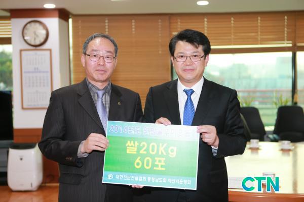 [¾Æ»ê/ctn]ÇѼºÁø ±âÀÚ = ´ëÇÑÀü¹®°Ç¼³ÇùÈ¸Ãæ³²Áöȸ(ÁöȸÀå ±èÅÃȯ) ¾Æ»ê½Ã¿î¿µÀ§¿øÈ¸(À§¿øÀå ±èâÁ¾)´Â Áö³ 19ÀÏ º¹±â¿Õ ¾Æ»ê½ÃÀåÀ» ¹æ¹®ÇØ ÈÄ¿ø¹°Ç°À» Àü´ÞÇß´Ù.