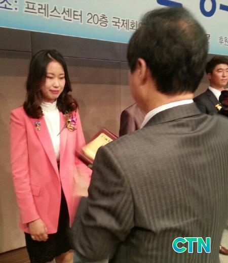 [û¾ç/ctn]ÀüÀÎö ±âÀÚ = û¾ç±º4-H¿¬ÇÕȸ À±Áö¿µ ȸ¿ø(¿© 27¼¼, Á¤»ê¸é ¹é°î¸®)ÀÌ 5ÀÏ ¿ÀÀü ¼¿ï½Å¹®»ç ±¹Á¦È¸ÀÇÀå¿¡¼ ¿¸° Á¦34ȸ ³ó¾îÃÌû¼Ò³â´ë»ó ½Ã»ó½Ä¿¡¼ ³ó¾÷ºÎ¹® Ưº°»óÀÎ ±¹¹«ÃѸ®Ç¥Ã¢À» ¼ö»óÇÏ´Â ¿µ±¤À» ¾È¾Ò´Ù.