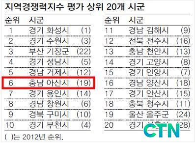 Àü±¹ 160°³ ±âÃÊ»ýȰ±Ç ½Ã±ºÀ» ´ë»óÀ¸·Î ½Ç½ÃµÈ À̹ø Áö¿ª°æÀï·ÂÁö¼ö Æò°¡¿¡¼ ½Ã´Â Áö³Çغ¸´Ù 13°è´ÜÀ̳ª ¶Ù¾î¿Ã¶ó ÃæÃ»±Ç¿¡¼ ù ¹øÂ°, Àü±¹¿¡¼ ¿©¼¸ ¹øÂ°·Î °æÀï·ÂÀÌ ³ôÀº µµ½Ã¶ó´Â ¿µ¿¹¸¦ ¾È¾Ò´Ù. ƯÈ÷ 10À§±Ç ³»ÀÇ ½Ã¸¦ ã¾Æº¸¸é ÃæÃ»±Ç¿¡¼´Â ¾Æ»ê½Ã°¡ À¯ÀÏÇÏ´Ù.