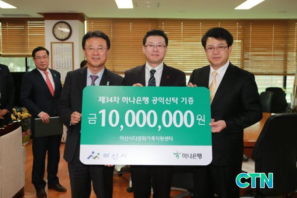 [¾Æ»ê/ctn]ÇѼºÁø ±âÀÚ = ÇϳªÀºÇà ¾Æ»êÁöÁ¡ÀÌ Áö¿ª ´Ù¹®È°¡Á·ÀÇ º¹Áö Çâ»óÀ» À§ÇØ Áö³ 14ÀÏ ¾Æ»ê½Ã¸¦ ã¾Æ ÈÄ¿ø±Ý 1õ¸¸ ¿øÀ» Àü´ÞÇß´Ù.