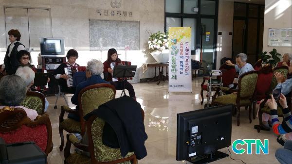 [¾Æ»ê/ctn]ÇѼºÁø ±âÀÚ = ¾Æ»ê½Ã µµ°í¸é ÇູŰ¿òÃßÁø´Ü(´ÜÀå ÀÌ¿ëÀÎ)ÀÌ Áö³ 20ÀÏ µµ°í À¯¸®º´¿ø 1Ãþ ·Îºñ¿¡¼ Àç´É³ª´® À½¾Çȸ¸¦ °³ÃÖÇß´Ù.