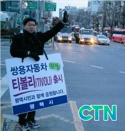½Ã¿¡ µû¸£¸é °ø ½ÃÀåÀº À̳¯ ¿ÀÀü ´ëÀü½Ã ´ëÀü¿ª ¼±¤Àå¾Õ¿¡¼ '½Ö¿ëÀÚµ¿Â÷ ½ÅÂ÷ Ƽº¼¸®¸¦ ÆòÅýùΰú ÇÔ²² ÀÀ¿øÇÕ´Ï´Ù'¶ó´Â ´ëÇü ÇÇÄÏÀ» ¸ñ¿¡ °É°í ´ëÀü ½Ã¹Îµé¿¡°Ô Ƽº¼¸®¸¦ ±¸¸ÅÇØ´Þ¶ó°í È£¼ÒÇß´Ù.