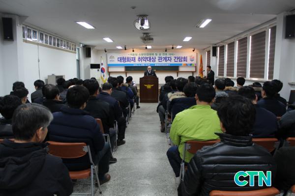 [¾Æ»ê/ctn]ÇѼºÁø ±âÀÚ = ¾Æ»ê¼Ò¹æ¼(¼Àå ÀÌÁ¾ÇÏ)´Â 5ÀÏ ¿ÀÈÄ 2½Ã ¾Æ»ê¼Ò¹æ¼ 3Ãþ ´ëȸÀǽǿ¡¼ ¾Æ»ê°ü³» ´ëÇüÈÀç Ãë¾à´ë»ó ¼Ò¹æ¾ÈÀü°ü¸®ÀÚ¸¦ ºñ·ÔÇÑ °ü°èÀÚ 100¿©¸íÀ» ´ë»óÀ¸·Î °£´ãȸ ¹× ¼Ò¹æ¾ÈÀü±³À°À» ½Ç½ÃÇß´Ù.