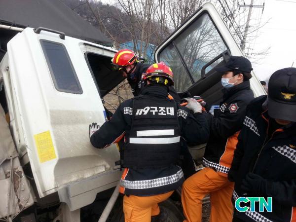 ÇöÀåÃ⵿ ±¸Á¶´ë¿øÀº ½Å¼ÓÇÏ°Ô È¹°Â÷ ¿îÀü¼®¿¡ ³¢¾îÀÖ´Â ¿ä±¸Á¶ÀÚ¸¦ ¿ä±¸Á¶ÀÚ¿ë ¾ÈÀüº§Æ®¿Í ·ÎÇÁ¸¦ ÀÌ¿ëÇØ Â÷·® ¹ÛÀ¸·Î ±¸Á¶ÇÑ ÈÄ ºÎ»óÁ¤µµ¸¦ È®ÀÎÇϰí Ä§ÂøÇÏ°Ô ÀÀ±Þóġ¸¦ ½Ç½ÃÇß´Ù.
