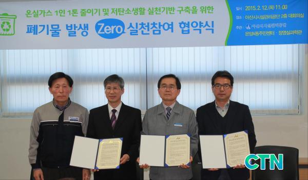 [¾Æ»ê/ctn]ÇѼºÁø ±âÀÚ = ¾Æ»ê½Ã½Ã¼³°ü¸®°ø´Ü°ú ¿Â¾ç4µ¿ ¹× À念½Ç°úÇаüÀº ¿Â½Ç°¡½º 1ÀÎ 1Åæ ÁÙÀ̱⠿Ȯ»ê°ú Àúź¼Ò»ýȰ½Çõ±â¹Ý ±¸ÃàÀ» À§ÇØ Áö³ 12ÀÏ °ø´Ü ´ëȸÀǽǿ¡¼ 'Æó±â¹° ¹ß»ý Zero ½ÇõÂü¿©'Çù¾à½ÄÀ» °¡Á³´Ù.