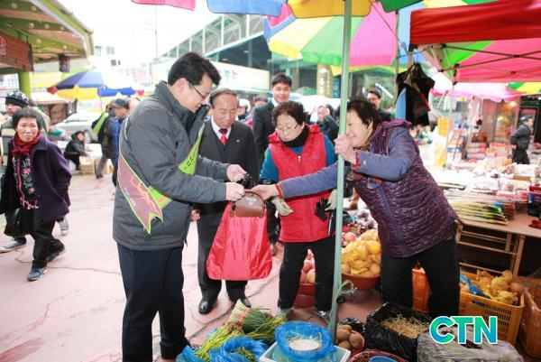 [¾Æ»ê/ctn]ÇѼºÁø ±âÀÚ = ¾Æ»ê½Ã´Â ¼³ ¸íÀýÀ» ¸Â¾Æ Áö³ 17ÀÏ °æ±âħÁ¦¿Í ±¸Á¦¿ª µîÀ¸·Î ¼Òºñ½É¸®°¡ À§ÃàµÇ¾î ¾î·Á¿òÀ» °Þ°í ÀÖ´Â ÀüÅë½ÃÀå¿¡¼ ¼³¸ÂÀÌ °æÁ¦»ì¸®±â ÀüÅë½ÃÀå À庸±âÇà»ç¸¦ ½Ç½ÃÇß´Ù.