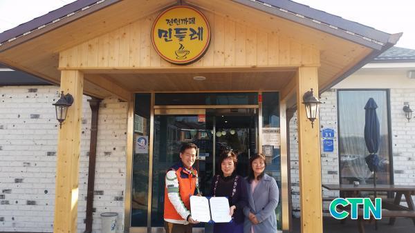 [¾Æ»ê/ctn]ÇѼºÁø ±âÀÚ = ¾Æ»ê½Ã ¿Â¾ç5µ¿ ÇູŰ¿òÃßÁø´Ü(´ÜÀå °¿¬½Ä)ÀÌ Áö¿ª º¹Áö Çâ»óÀ» À§ÇØ Áö³ 26ÀÏ ±â»êµ¿¿¡ ¼ÒÀçÇÑ Àü¿ø±îÆä ¹Îµé·¹(´ëÇ¥ ±è¼øÈ¯)¿Í ÇູŰ¿òÁö¿ø»ç¾÷ ÈÄ¿ø Çù¾àÀ» ü°áÇß´Ù.