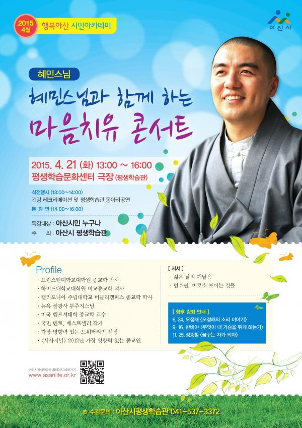'Çý¹Î½º´Ô°ú ÇÔ²²ÇÏ´Â ¸¶À½Ä¡À¯ ÄܼƮ'¶ó´Â ÁÖÁ¦·Î 21ÀÏ ¿ÀÈÄ1½ÃºÎÅÍ Æò»ýÇнÀ¹®È¼¾ÅÍ ±ØÀå¿¡¼ ÁøÇàµÇ´Â À̹ø °¿¬Àº °úµµÇÑ °æÀï»çȸ¿Í Á¤º¸ÀÇ È«¼ö·Î ÀÎÇØ ²÷ÀÓ¾øÀÌ ³²µé°ú ºñ±³´çÇϰí, ¶Ç ½º½º·Î ºñ±³ÇÏ¸é¼ ÀÚÁ¸°¨¿¡ »óóÀÔ°í ¸¶À½ÀÌ ¿ì¿ïÇØÁø À̵鿡°Ô Çý¹Î ½º´ÔÀÇ ÀçÄ¡ ÀÖ´Â ¾ð¾î¿Í °¨µ¿ÀûÀÎ À̾߱â·Î ÀÚÁ¸°¨À» ȸº¹ÇÏ´Â ¸¶À½Ä¡À¯ÀÇ ½Ã°£À¸·Î ÁøÇàµÉ ¿¹Á¤ÀÌ´Ù.