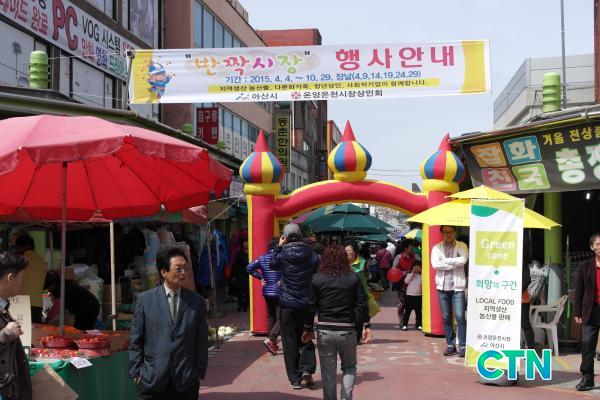[¾Æ»ê/ctn]ÇѼºÁø ±âÀÚ = ¿Â¾ç ÀüÅëÀç·¡½ÃÀåÀÇ È°¼ºÈ¸¦ À§ÇØ ¾Æ»ê½Ã¿Í ¿Â¾ç¿Âõ½ÃÀåÀÌ °øµ¿À¸·Î ¿î¿µÇÏ´Â '¹Ý¦½ÃÀå'ÀÌ Áö³ 4ÀÏ ½Ã¹ÎµéÀÇ Å« È£ÀÀ¼Ó¿¡ °³ÀåÇß´Ù.
