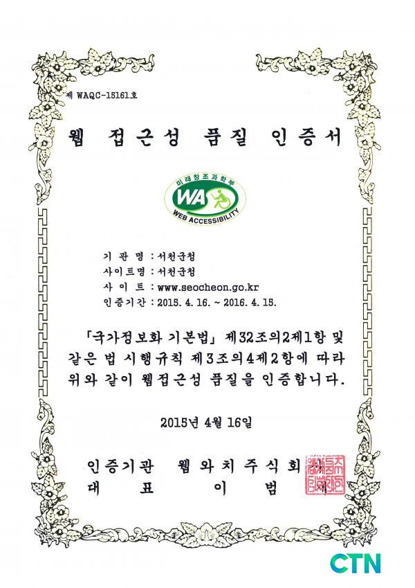 [¼Ãµ/ctn]ÀÓÁ¾º¹ ±âÀÚ = Ãæ³² ¼Ãµ±º(±º¼ö ³ë¹Ú·¡)Àº ¼Ãµ±º ´ëǥȨÆäÀÌÁö(http://www.seocheon.go.kr) WAǰÁúÀÎÁõ¸¶Å©(À¥ Á¢±Ù¼º ǰÁúÀÎÁõ¸¶Å©)¸¦ ȹµæÇÔÀ¸·Î½á ´©±¸³ª ½±°Ô ÀÌ¿ëÇÒ ¼ö ÀÖ´Â Æí¸®ÇÑ Á¢±Ù¼ºÀ» ÀÎÁ¤¹Þ¾Ò´Ù.
