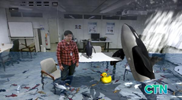 ETRI-°ø°£Áõ° ÀÎÅÍ·¢Æ¼ºê ½Ã¿¬Àå¸é, ¿¬±¸ÁøÀÌ ¸¶Ä¡ ¹°¼Ó¿¡ ÀÖ´Â °Íó·³ °¡»óÀ¸·Î üÇèÇϰí ÀÖ´Â Àå¸é.