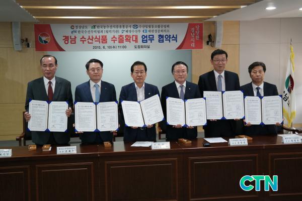 [°æÁ¦/ctn]Á¤¹ÎÁØ ±âÀÚ = Çѱ¹³ó¼ö»ê½ÄǰÀ¯Åë°ø»ç(aT, »çÀå ±èÀç¼ö)´Â ±¹³» ¼ö»ê½Äǰ ¼öÃâ¾×ÀÇ 25%ÀÌ»óÀ» Â÷ÁöÇÏ´Â ¼ö»ê½Äǰ ÁÖ ¼öÃâ Áö¿ªÀÎ °æ³²µµ¿Í ¼öÇùÁß¾Óȸ, Çѱ¹¼ö»ê¹«¿ªÇùȸ ¹× ÇØ¾ç¼ö»ê»ê¾÷ »ó»ýÇù·ÂÃßÁø´Ü(ÇØ¾ç¼ö»êºÎ¡¤´ëÇÑ»ó°øÈ¸ÀǼÒ)°ú Áö³ 10ÀÏ °æ³²µµÃ»¿¡¼ °æ³²¼ö»ê½Äǰ ¼öÃâ½ÃÀå ´Ùº¯È¿Í ¼öÃâ È®´ë¸¦ À§ÇÑ ¾÷¹«Çù¾à¸¦ ü°áÇß´Ù.